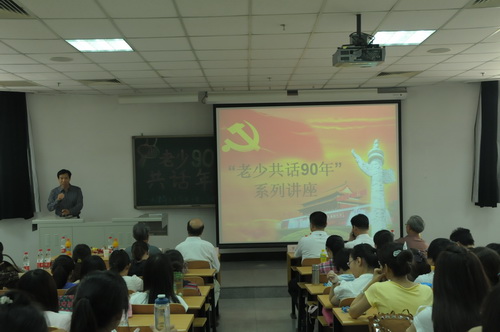 为迎接建党九十周年,国际教育学院直属党支部邀请到老干部工作部的老党员同志,与我院教工党员、学生党员以及入党积极分子共同开展“老少共话九十年”系列活动。