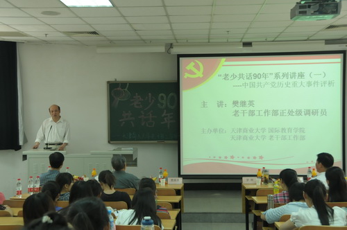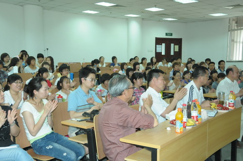 樊老师的讲演生动精彩,博得了在场老师和同学们的阵阵掌声。老干部工作部部长罗晖,原校宣传部部长李润滨,原校党委组织部副部长张克俊,老干部工作部副部长刘福智,国际教育学院直属党支部书记郑志明及国际教育学院教工党员聆听了本次讲座。本场讲座也标志着国际教育学院庆祝建党九十周年“老少共话九十年”系列活动正式拉开了序幕。