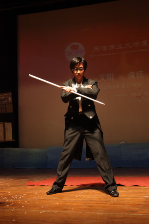 伴着激昂的歌声,来自天津科技大学的午夜阳光乐队闪亮登场, 点燃了在场观众的激情。 在 2010 年天津市文艺展演中获得一等奖的中国民航大学小合唱团体带来了改编版的《 Baby 》,优美的旋律、完美的和声、默契的配合赢得了全场观众的掌声。天津音乐学院的同学带来歌曲串烧,时而欢快,时而深情,带给观众多种感受。beat365官网“校园十大歌手比赛”的冠军张立群以他当初的参赛曲目《痴心绝对》再次感染在场观众,让大家一饱耳福。来自beat365官网魔术协会的精彩表演 《文明与疯狂》成为全场亮点, 魔术师精湛的技术 让观众不时惊呼叫好。 舞蹈《花蝴蝶》跳得妩媚唯美,将现场气氛推向另一个高潮。最后,晚会在beat365官网街舞社团 918 Disco Club 的精彩表演《 Final Fantasy 》中落下帷幕。