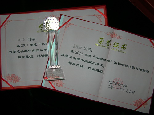 在全校总决赛之前,我院学生会学习部和 My Space 英语俱乐部联合举办了院内初选,经过院内选拔赛的激烈竞争, 2010 级财务管理(中澳) 1004 班学生周易以及 1003 班学生王婉伊分别以总分前两名的成绩,从 12 名初赛选手中脱颖而出,代表学院参加全校总决赛。两位同学分别以 Attitude Has Changed the World 和 Apple Has Changed the World 为题,凭借流利的口语和精彩的发挥,最终分获二、三等奖。此外,王婉伊同学还将在 11 月代表学校参加天津市的决赛。