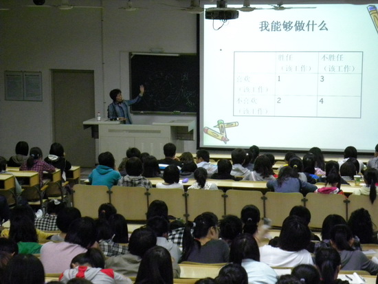 围绕“大学生学业生涯规划”的主题,张书记深入分析了学生的变化与特点,有针对性地对学业生涯规划的步骤级自我评估进行了详细的介绍和全面的指导,强调要学会认知,学会贡献,要客观分析环境,正确对待学业,科学树立目标,并鼓励同学们勇于创新、勇于超越,为今后的职业生涯规划奠定良好的基础。
