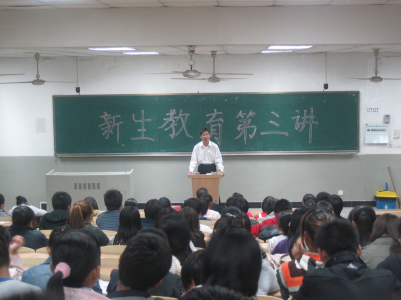 讲座于晚上六点半开始。为了使10级新生更加明确大学应该学什么。他们提出大学有三项重要的认识任务学会做人、学会做事、学会学习。做人要德才兼备,一定要做一个待人真诚、有涵养的人;做事一定要认真,细节决定成败;学习要坚持要注重积累,注重学习能力的培养。周登珊还将激励自己多年的座右铭送给了广大新生:为什么我不能成为第一?