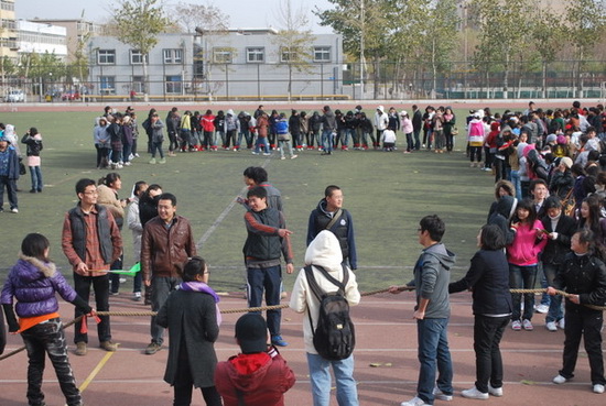 11 月11日 下午艺术学院分团委学生会在体育场举办了我院第一届素质拓展运动会,团委韩老师出席了运动会开幕式。我院全体同学和新生班主任积极参与其中,在相互配合、信任、理解中完成了全部比赛项目,素质拓展运动会最终取得了圆满成功。