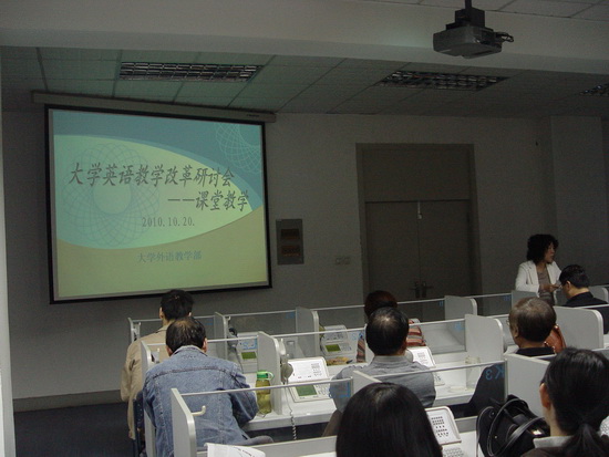 会议第二阶段是分组讨论,全体大外部教师共分为三个组,讨论内容包括大学英语教学组织机构、课程体系、教学模式及教学管理等方面。其中在教学组织机构改革方面,许多老师提出:要提高人才培养质量, 组织实施计算机网络课堂教学,大力加强学生自主学习资源的建设,为学生英语学习提供全方位的指导和服务。参加研讨会的教授、老师还就大学英语教学模式的特点和着力点、课程体系建设及教学质量考核、浓厚学校英语学习氛围等问题展开热烈讨论,提出许多富有创意的意见和建议。