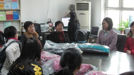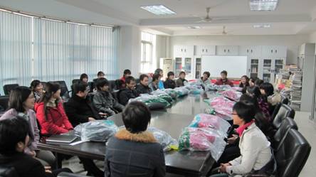近日,天气转冷,为了确保 2009 级家庭经济困难学生能够 安心学习、 温暖过冬 , 经济学院特为他们采购了一批冬衣。 11 月 18 日中午,经济学院 2009 级家庭经济困难学生座谈会暨冬衣发放仪式在学院三楼会议室举行,经济学院党总支书记白玲、副书记张淑敏出席了座谈会,经济学院各系辅导员老师以及 2009 级家庭经济困难学生代表共计 30 余人参加了座谈会,座谈会由张玉娟老师主持。