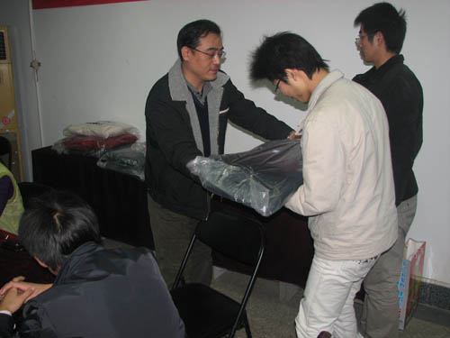 12 月 1 日 ,机械工程学院在教学楼 3-310 举行了棉衣发放仪式。党总支书记李勤国亲手为 2009 级 21 名家庭困难学生发放过冬棉衣,为同学们送去了温暖,减轻了同学们生活及家庭的困难。