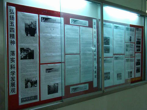 本期宣传栏刊出的主要内容包括:全文刊载了 5 月 2 日 《人民日报》刊登的《胡锦涛在同中国农业大学师生代表座谈时的讲话》,并将胡锦涛总书记在讲话中勉励当代大学生的话语“弘扬五四精神 落实科学发展观”作为宣传栏的竖排大字标题;全文刊登了beat365英国官方网站深入学习实践科学发展观活动领导小组办公室专门针对学院的学习实践活动编发的题为《信息工程学院学习实践活动突出“高、实、活”》的第 20 期《简报》;全文刊登了学院 深入学习实践科学发展观活动领导小组正、副组长马富忠书记和张立毅院长在学校 学习实践科学发展观活动专题网站上发表的心得体会;宣传栏还通过直接打印相关网页的形式,刊出了 3 月份以来,校园网刊登的学院学习实践活动的详细情况。