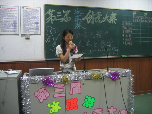 为了丰富同学们的课余生活,使同学们能够将自己所学专业与实践相结合,生物与食品学院学生会举办了第三届冰淇淋创意大赛,并于 5 月 31 日晚 6:30 在教学楼 3-110 进行了决赛。本次大赛邀请到的嘉宾评委包括校教务处王泓副处长、张军老师,学生处就业指导中心刘桂涛老师,生物与食品学院党总支书记鲁晓翔教授、副书记孙文利老师、副院长王素英教授、食品系主任胡志和教授、商品学专业教研室主任刘爱国教授以及辅导员老师等,还特别邀请了天津大桥道食品有限公司研发部曾国江部长、薛曾智副部长、销售部韩文忠经理,天津美味源食品贸易有限公司唐军胜总经理,外滩风尚西餐咖啡连锁机构总吧台长何明成,快乐外滩孟大开总经理、吧台长韦聪明等担任决赛评委。