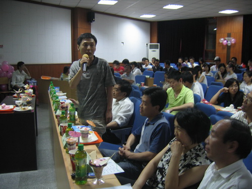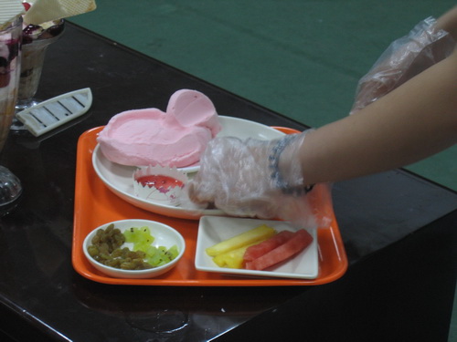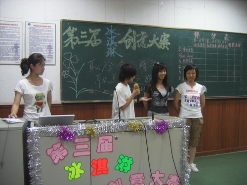 第三个环节“淋感尽现”由参赛选手们现场将他们的创意冰淇淋制作出来,并作展示。赛会主办者——生物与食品学院学生会还体贴的为现场每位观众送上了一支冰糕。比赛过程中 , 赵兴同学和王昊宇同学还将自己的 SRT 团队研究出来的有关冰淇淋的最新成果与同学们进行了交流。