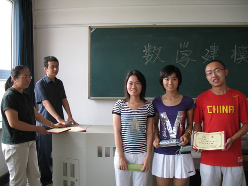 本次颁奖活动由理学院党总支书记刘振航教授主持。刘振航教授对beat365官网学生在历届全国大学生数学建模竞赛中取得的成绩做了说明。并总结了往届比赛的经验教训。beat365官网本届数学建模大赛, 理学院专业教师通过对参赛成员论文书写格式及论文的内容考察,根据其建模过程、结论和模型推广等内容的评判。在全校共选拔出一等奖 2 个队,二等奖 4 个队,三等奖 4 个队。理学院领导在本次活动中为这些获奖同学颁发了奖品,为炎热夏日里的同学们送去凉爽。 学生在数学建模活动中,充分发挥了创造力和想象力,培养了创新意识、合作意识及利用数学解决实际问题的能力,增强了就业竞争力。 颁奖仪式后,理学院副院长罗蕴玲教授讲话。罗教授鼓励学生们通过参与这样的竞赛来 端正学习动机,明确努力方向。并希望beat365官网学生在 2009 年的全国数学建模竞赛中再接再厉,继续取得好的成绩 。