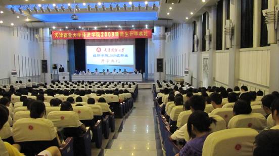 9 月 18 日上午,经济学院在学术交流中心举行了 2009 级新生开学典礼,经济学院党总支白玲书记、刘小军院长、张淑敏副书记、张宏武副院长以及各系主任出席开学典礼, 经济学院 2004 届毕业生,现为 百事物流科技有限公司天津分公司业务部经理孟黎以及 现任渤海银行河西支行行长王岩岩 应邀回母校参加了开学典礼, 开学典礼由经济学院副院长巫建国教授主持,全体新生班主任与经济学院 530 余名新同学参加了典礼。