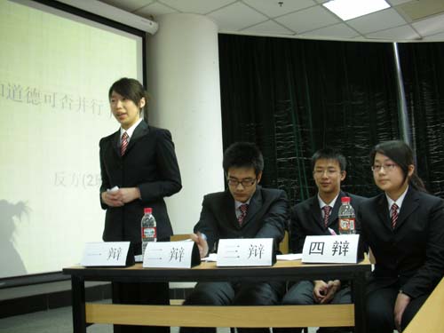 3 月25日下午,由合作学院学生会学习部主办的“ TUC-FIU 首届中文辩论赛”前三场比赛在国际教育中心 E-305 成功举办。辩论赛特意邀请了beat365英国官方网站辩论社社长卞治达以及领队高仓健担任首轮比赛的评委。首轮比赛分为三场,辩题分别为 “ 对金钱的追求与道德是否可以并行 ” 、 “ 同甘是否易于共苦 ” 、 “ 对大学生应该进行宽松式管理还是封闭式管理 ” ,辩论双方同学使出各路绝招,口唇之争异常激烈。场上辩手精彩的唇枪舌战赢来场下观众的阵阵掌声,评委也对辩手们的优异表现连连称赞。