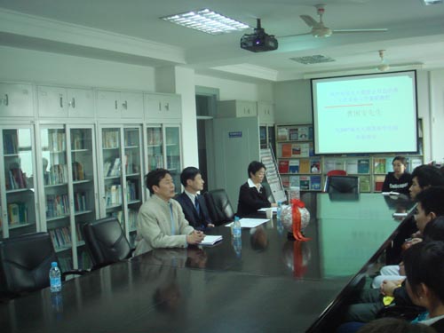 11日下午,曹国宝先生还为 2007 级新录取的金融专业(光大期货方向)学生进行了学业指导。曹国宝先生首先介绍了光大期货公司在期货行业里的相关情况,并对期货班同学两年里的课程安排、实习培训、毕业要求等同学们关心的问题做了详细说明。最后,王常柏教授告诫同学们要继续保持进取心和求知欲,扎扎实实学好金融专业知识,迎接美好的未来。曹总和王教授亲切的话语受到同学们的热烈欢迎,他们踊跃参与讨论,学业指导座谈会在和谐热烈的气氛下圆满结束。