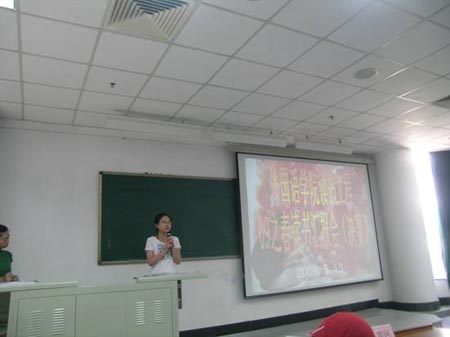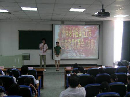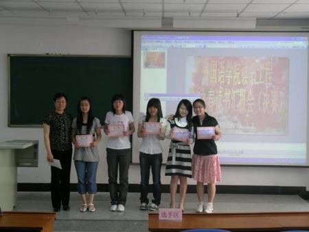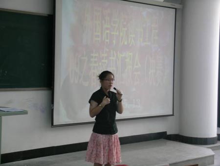 为了给学生营造良好的学习氛围,培养学生的拼搏和创新精神,为了使学生徜徉于书的海洋,领略世间的美好,感受智慧的博大精深,体悟知识的浩瀚无穷,激发创新和拼搏精神,为了配合外语专业课程的学习,外国语学院从本学期开学以来,以岳福新副教授为主策划人,针对 08 年级继续实施开展了读书工程计划。计划分三大部分 : 为学生提供学校图书馆和外国语学院资料室专业阅读数目 , 分门别类 , 逐一划分阅读类别和等级,为每位学生印制《导读指南和背诵英语经典名篇手册》,要求在不同的年级和学期完成不同的背诵内容 ; 要求学生两周写一次读书报告 , 老师严格判阅 , 成绩记入平时成绩 ; 每学期举办两次读书汇报会 , 评选出“读书之星”和“背诵之星”。评选出一到三等奖 , 颁发奖品和证书,并张贴宣传优秀读书报告。