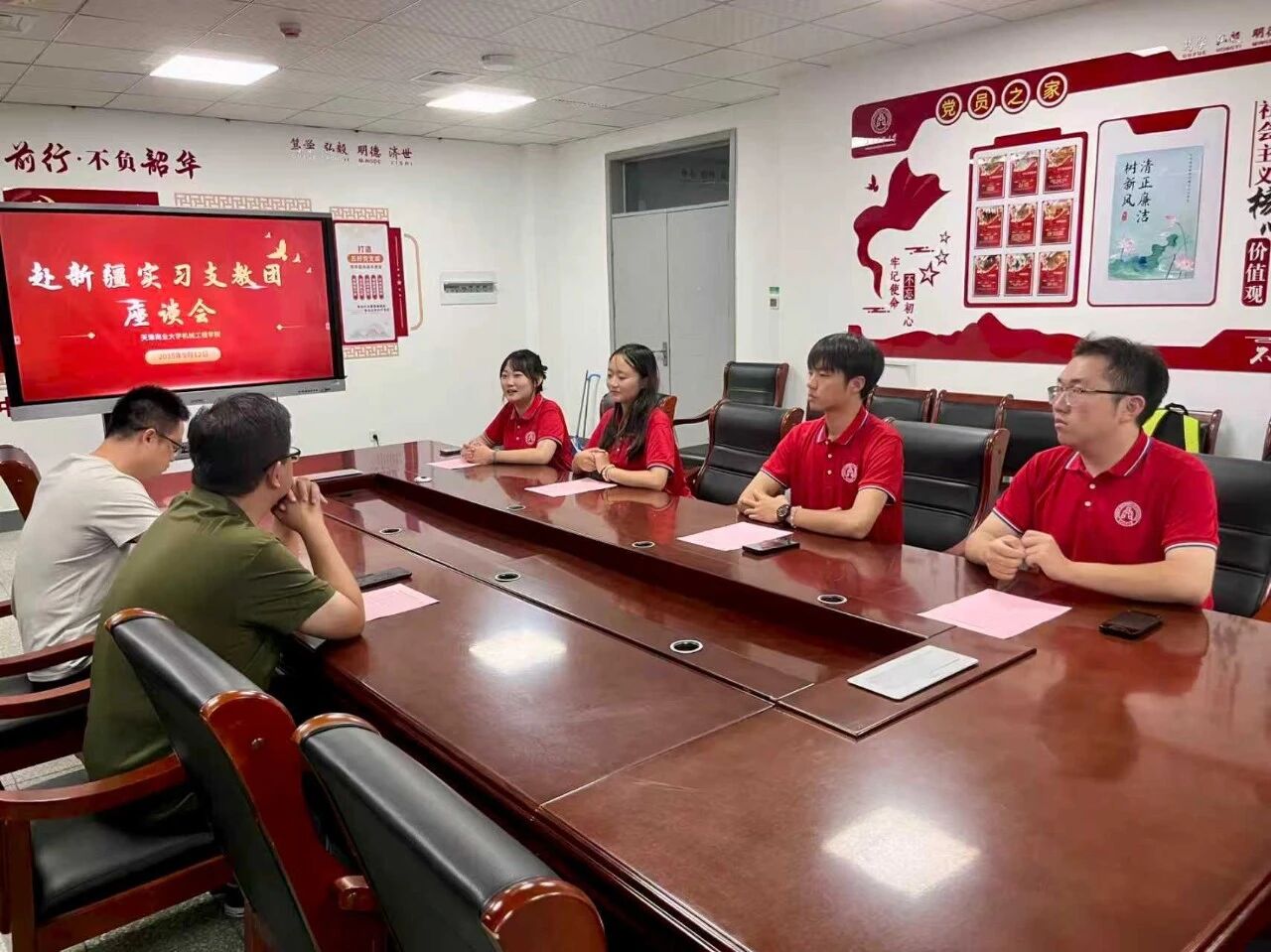9月12日下午,机械工程学院学院在1号实验楼502室召开援疆支教学生交流座谈会。学院党委副书记王凯、辅导员苗敬臣及4名即将启程参加援疆支教的大学生参加座谈会。