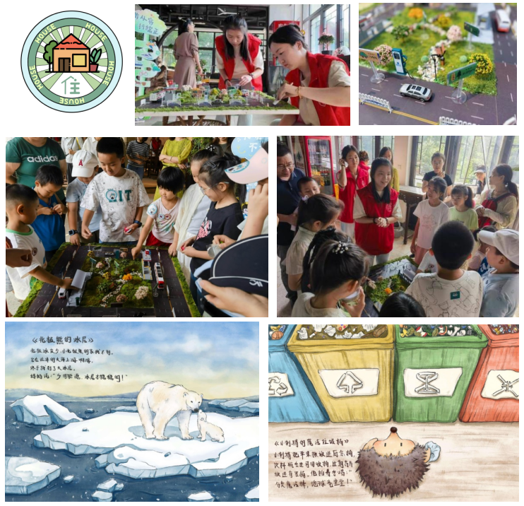 “住”环节通过环境设计专业制作的动态城市沙盘模型,直观对比不同交通工具的碳排放差异;结合植物花卉展示碳汇技术,科普自然固碳原理。绘画专业学生创作碳排放危害主题手绘明信片,以故事化视觉语言传递环保理念,实现科技与艺术的有机融合。