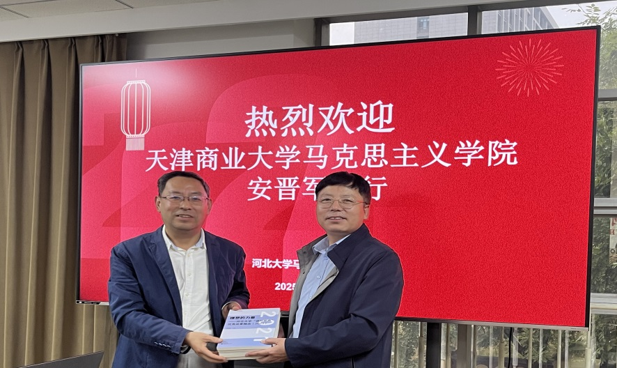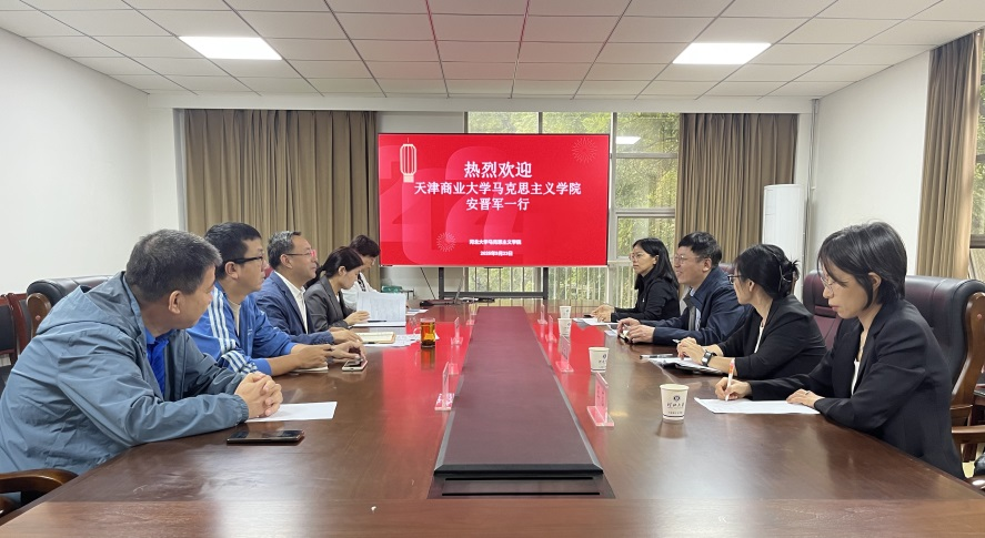 为进一步优化完善马克思主义理论学科研究生培养体系,推动学科建设高质量发展,9月23日,马克思主义学院副院长安晋军、毛泽东思想和中国特色社会主义理论体系概论教师党支部书记刘文佳、思想政治教育教研部主任罗来玮、马克思主义基本原理教研部教师王蕊一行四人,赴河北大学马克思主义学院开展调研学习,受到河北大学马克思主义学院院长王海、副院长田海舰及相关学科负责人热情接待。