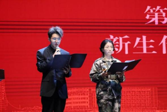在校生代表马艺丹结合自身学习与实践经历,勉励新生明确大学目标,保持对未知领域的探索热情;新生代表尹梦晨、谢孟轩代表全体新生郑重承诺,将始终秉承学校“笃学、弘毅、明德、济世” 的校训精神,锤炼意志品质,提升专业能力,在大学生活中放飞梦想。