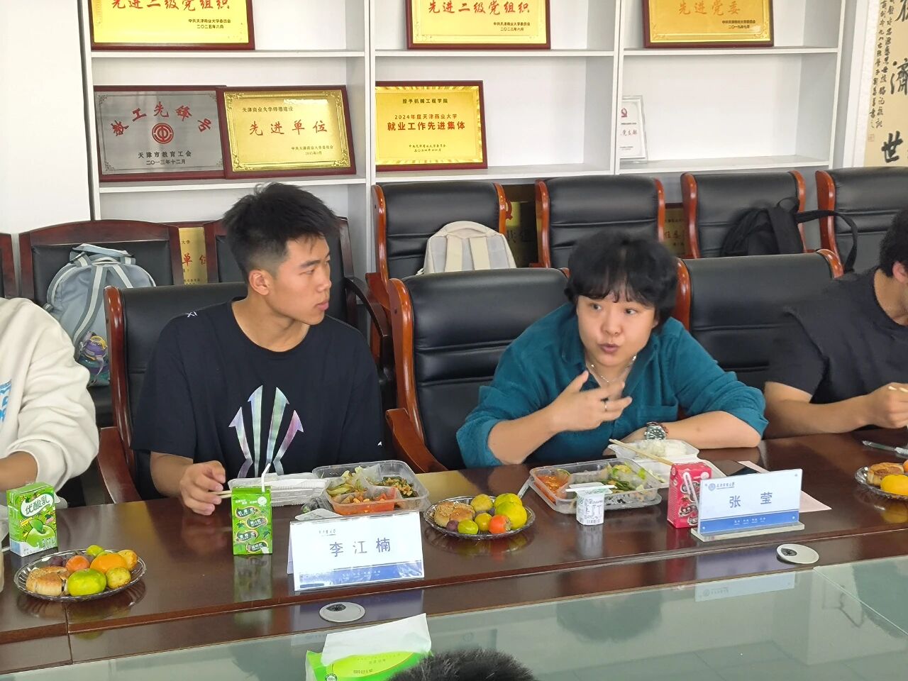 9月29日中午,机械工程学院在1号实验楼502会议室举办“邀月庆华诞 青衿绘蓝图——2025级新生院长午餐会”。学院党委书记张莹、院长刘圣春、党委副书记王凯以及2025级新生辅导员李锦田、申航源与21名2025级新生代表共进午餐,共话成长。