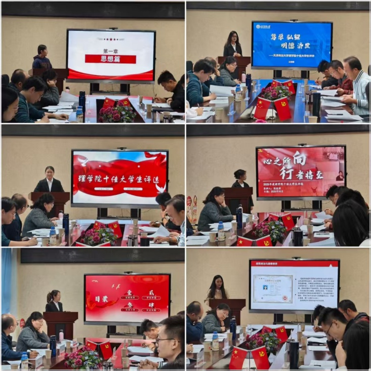 10月11日下午,理学院2025年“十佳大学生”评选大会在1号教学楼806室举行。学院领导班子成员、各系室主任、班主任代表及相关辅导员出席活动并担任评委,部分学生现场观摩。