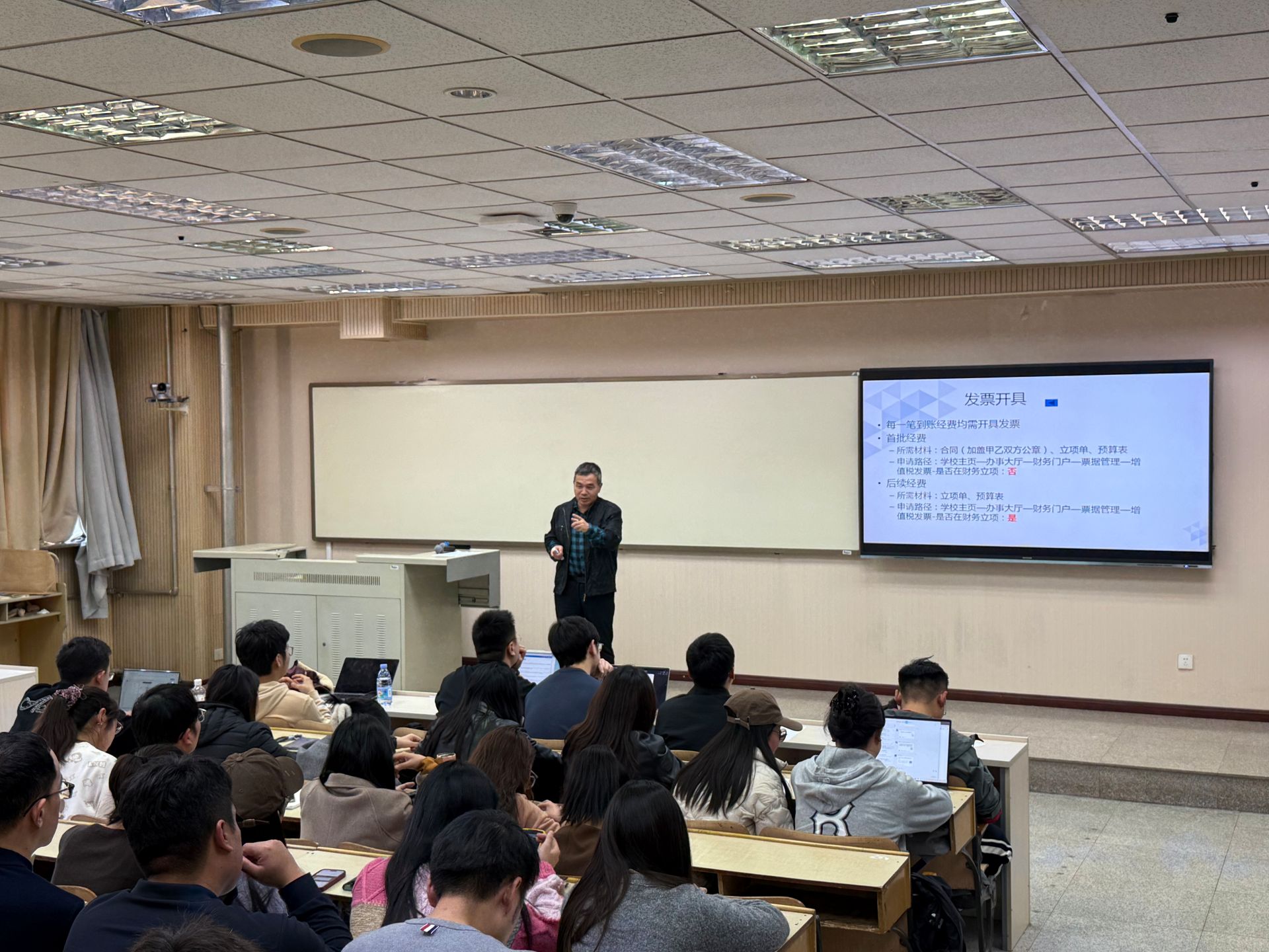 刘斌围绕科研项目申报、科研奖项、成果认定等方面与新入职教师分享如何做好科研工作。系统梳理各级各类科研项目的申报时间、流程与注意事项,详细介绍横向项目管理、科研经费使用、成果认定与报奖流程。要求新入职教师坚守学术道德,恪守学术规范,聚焦真问题,鼓励大家依托学校特色研究领域,积极融入团队,开展有组织、有实效的科研,不断提升服务经济社会发展的能力。