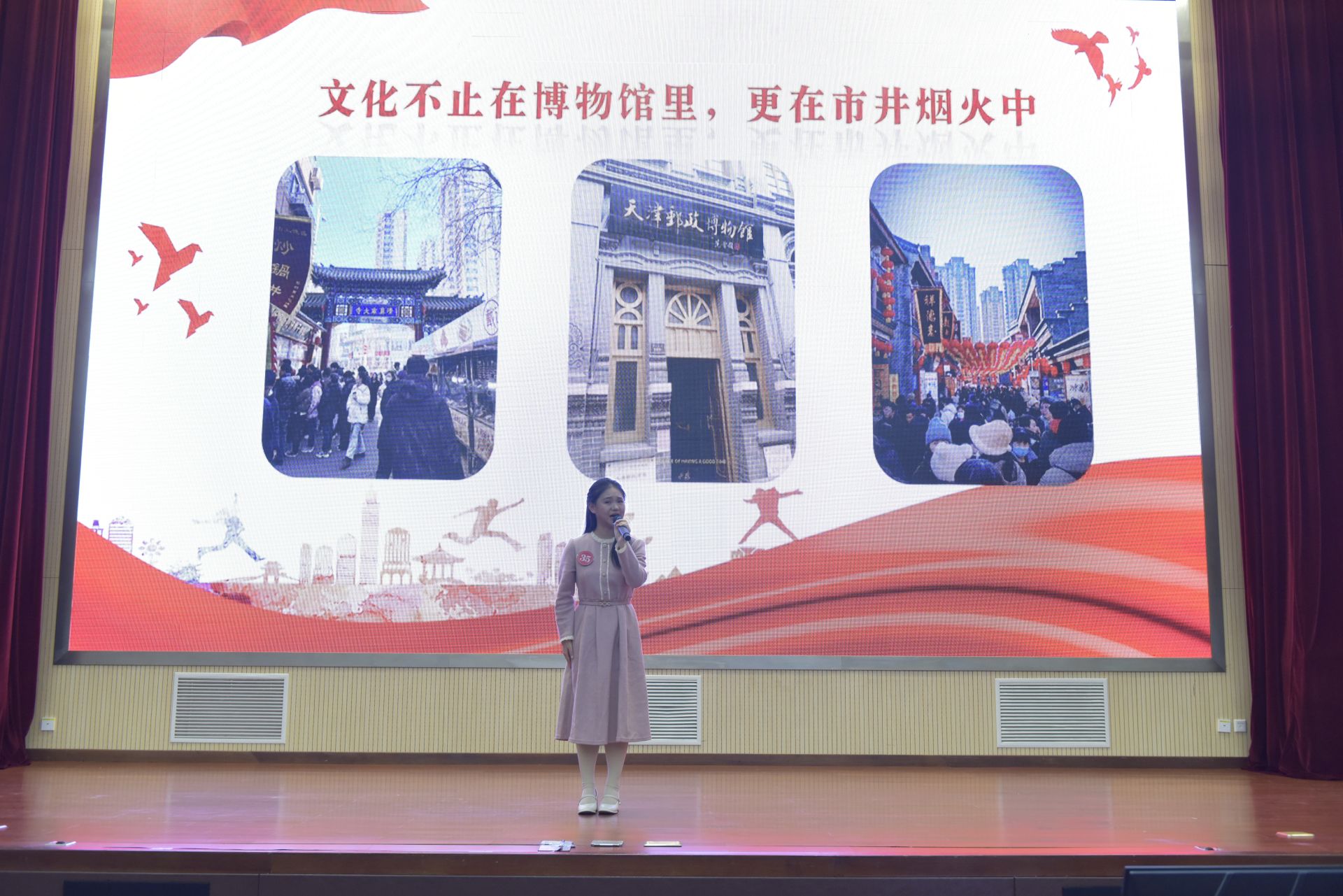 谢思涵同学以《烟火照文脉,匠心筑津魂》为题,围绕《中国传统文化精神》一书,深情地表达了对津沽文化传承与创新的深刻理解。她的演讲从天津的“烟火气”着手,于细微处见真情,以“匠心精神”贯穿始终,结合个人经历与真实感受,生动地阐释了天津文化的深厚底蕴与时代意义。她的现场表现情感充沛、语言流畅、立意深远,充分展现了对天津传统文化的热爱与传承,深深打动了评委与观众,彰显了beat365官网学子坚定的文化自信与积极向上的精神风貌。
