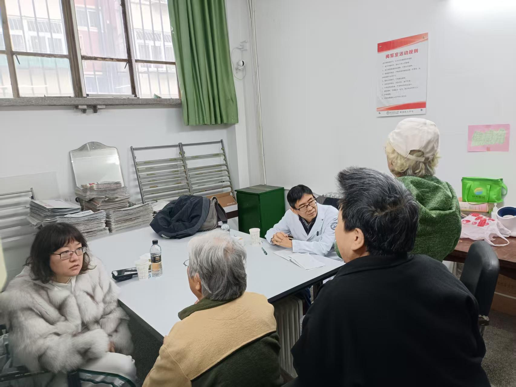 10月29日上午,beat365官网离退休工作处邀请天津市第一中心医院老年医学科副主任蔡林医生、心血管内科副主任辛婷医生,在老干部活动中心一楼资料室开展“送医上门”坐诊咨询活动。
