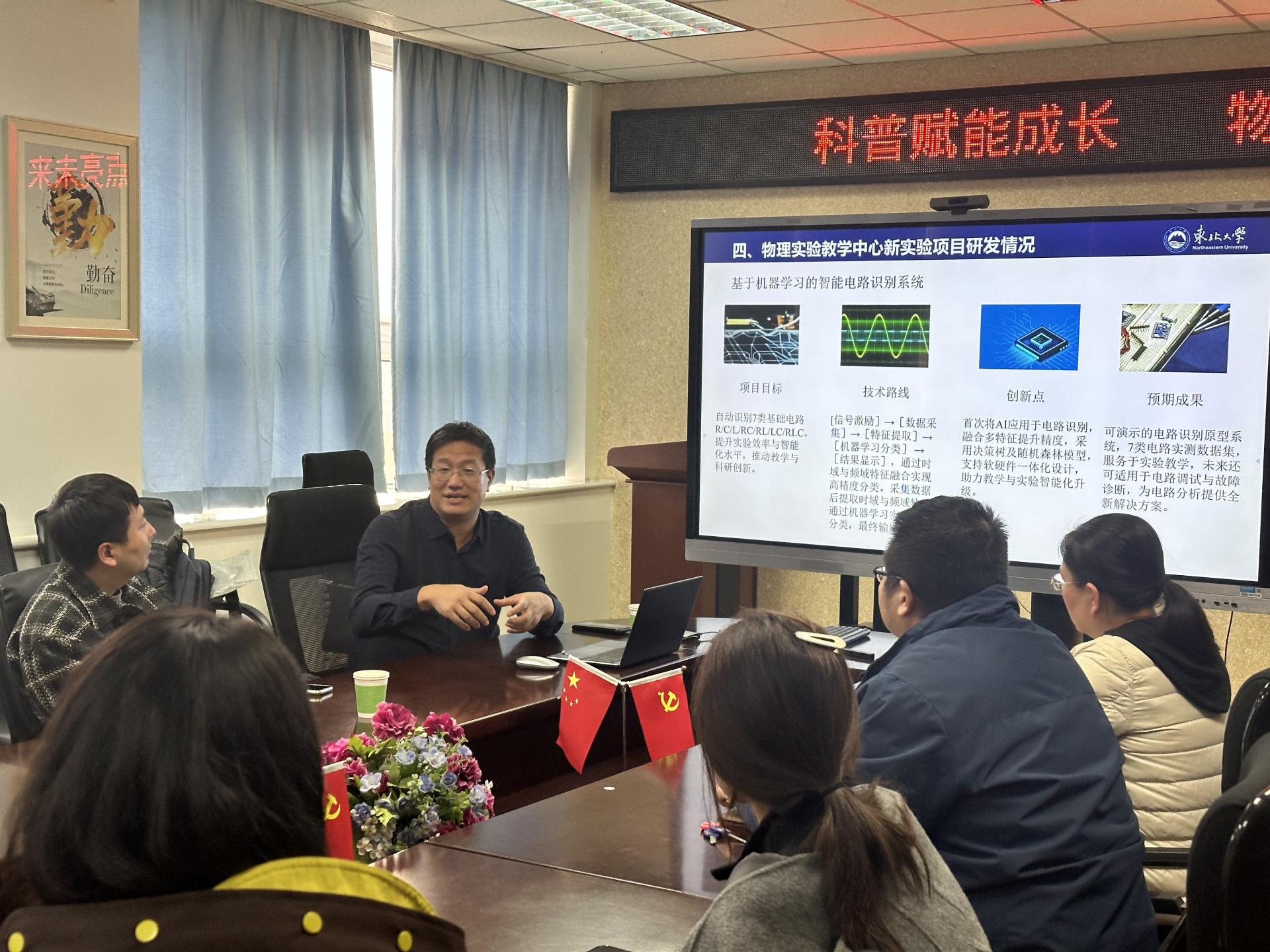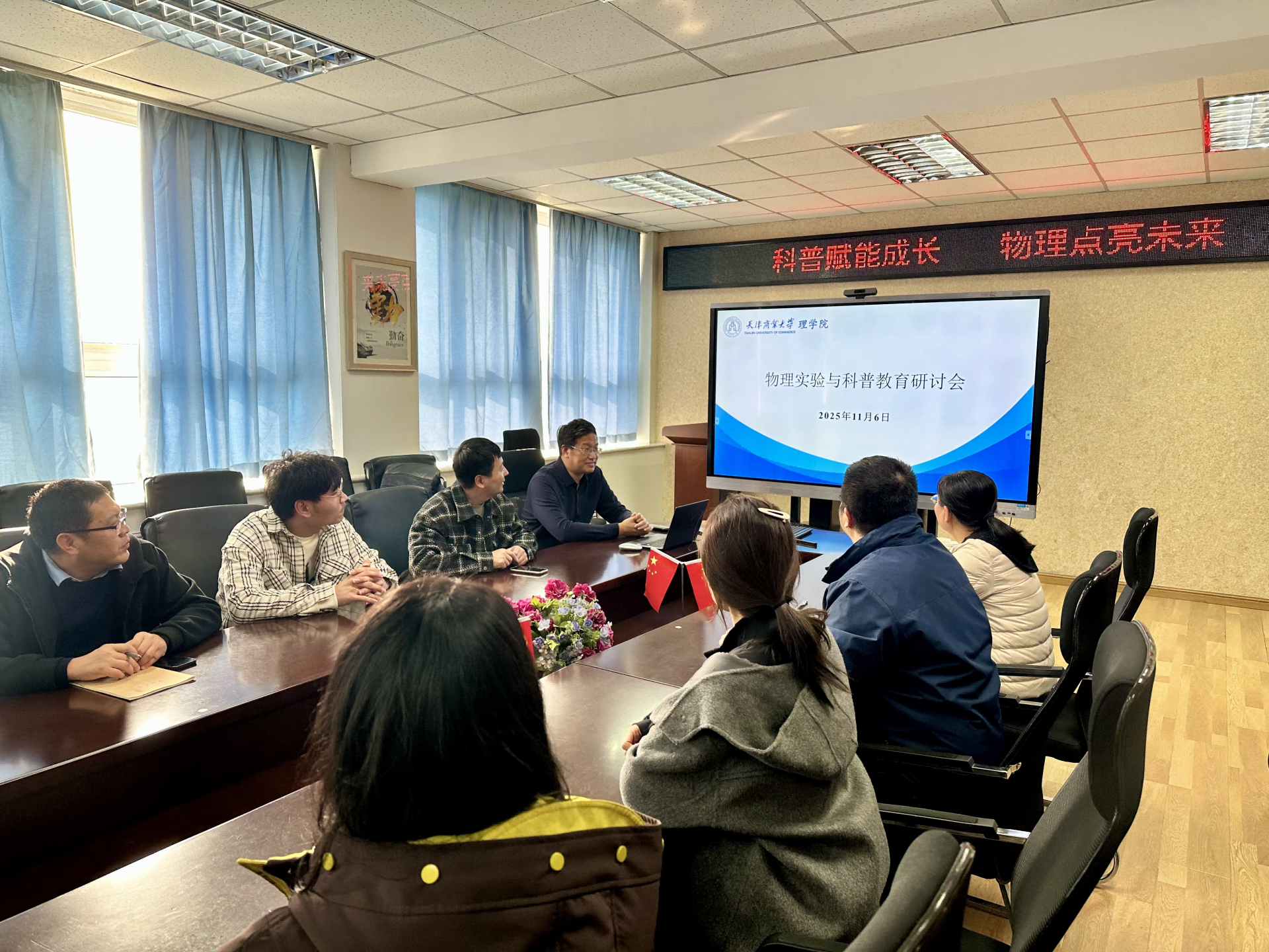 为探索大学物理实验教学的新范式、推动公共课教学改革、促进科学普及与实践育人的深度融合,近日,理学院举办大学物理实验与科普教育系列研讨会。活动特邀南昌大学物理国家级实验教学示范中心副主任洪文钦与东北大学理学院副院长王旗两位领域专家先后作专题报告,分享了他们在科普项目开发与AI赋能实验教学等方面的前沿理念与宝贵经验。物理实验教学示范中心主任周严、物理系系主任贾光一出席研讨会,物理系骨干教师参加活动。