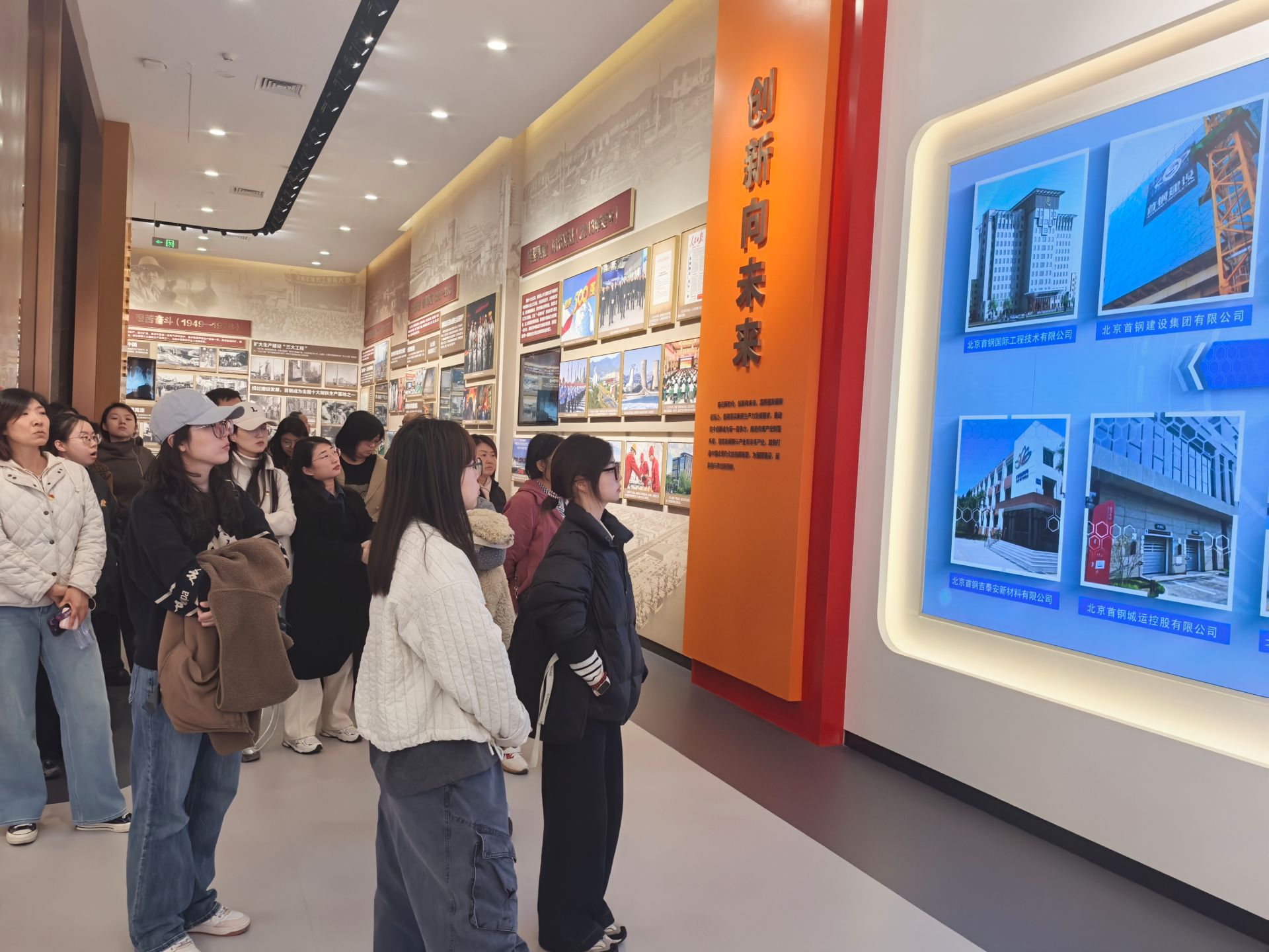 下午,师生党员前往北京首钢园进行参观学习。作为老工业基地转型标杆,首钢园实现了融合会展、体育、文化等多元化业态的转型升级。师生党员首先参观了承载着百年工业记忆的北京市爱国主义教育基地——首钢陶楼,随后登三高炉俯瞰园区全景,深入了解首钢的发展历史和工业遗产再利用的成功模式,最后参观陶朱制造局,体验人形机器人和AI产品,感受“老工业基地”在智能制造时代的管理革新。