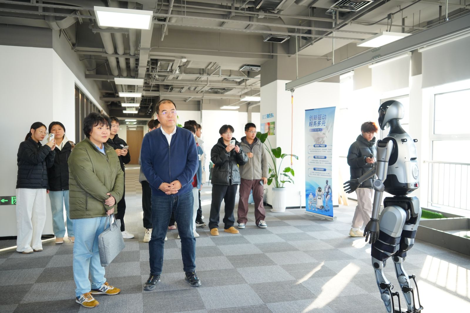公司创始人李富民、董事长陈奕超对学院师生一行的到访表示热烈欢迎并陪同参观座谈。师生们先后走进天工机器人产教融合区、基础教育区,通过技术人员的现场讲解、设备实操演示,全方位深入了解公司在机器人技术研发、场景应用创新及教育实践平台建设等方面的最新成果,近距离感受智能制造领域的前沿发展动态。