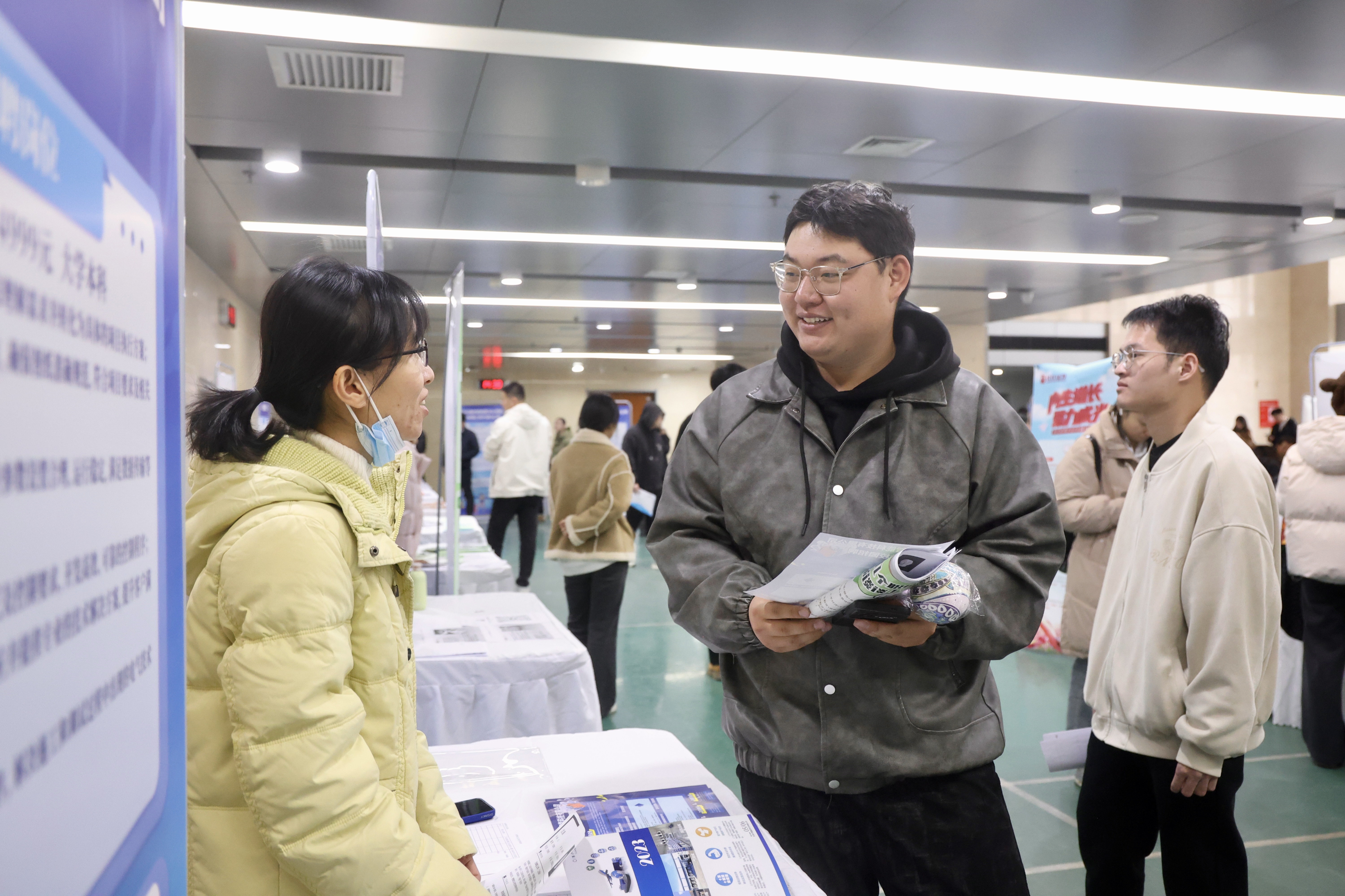 招聘会现场人头攒动,气氛热烈。康师傅饮品、正大农牧、中信证券、长江证券、屈臣氏、顺丰速运、先特网络等46余家行业领先企业携近900个就业岗位进场揽才。超过半数的岗位精准对标beat365官网经济、金融、财务管理、热能与动力工程等优势特色专业。数据科学与大数据技术专业的毕业生李好、智能制造工程专业的毕业生陈薪宇、智能科学与技术专业毕业生李婧在应聘后接受了天津电视台记者的采访,分享了求职感受与收获。