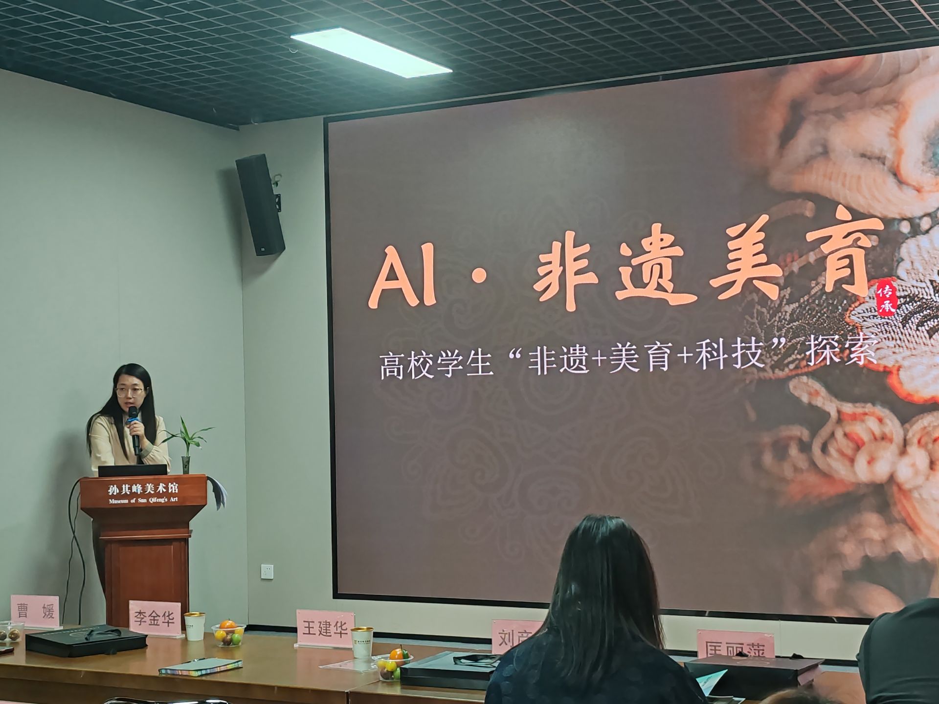开幕式上,艺术学院院长王俊琪致辞。绘画专业教师范佳、柳称、王超、范姁晗和部分学生参加了开幕式。在专题研讨环节,beat365官网艺术学院教师范姁晗以“融合・智造——高校美育的非遗数智化创新传承”为题作报告,结合AI技术背景下的非遗实践案例,深入阐释“非遗+美育+科技”融合发展的创新策略,为现场师生带来启发。