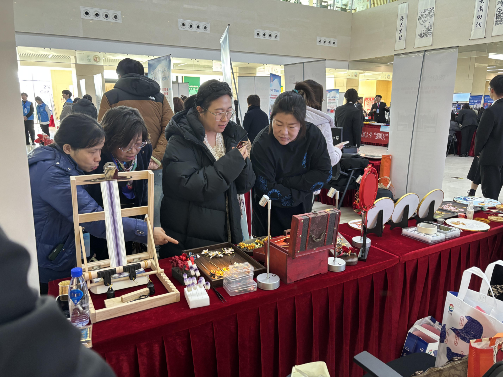 活动中,团队带来的精心创作的非遗花丝镶嵌与掐丝珐琅作品成为全场焦点。花丝镶嵌作品以金、银为原料,采用掐、填、攒、焊、编织、堆垒等传统技法,其精妙绝伦的工艺令现场观众叹为观止并竞相购买;而掐丝珐琅作品则以其绚丽的色彩、浓郁的金属质感与独特的文化符号,吸引了参观者拍照留念与驻足购买。活动现场还设计了体验环节,让观众亲手尝试非遗技巧,在趣味互动中感受非遗魅力,播下文化传承的种子。