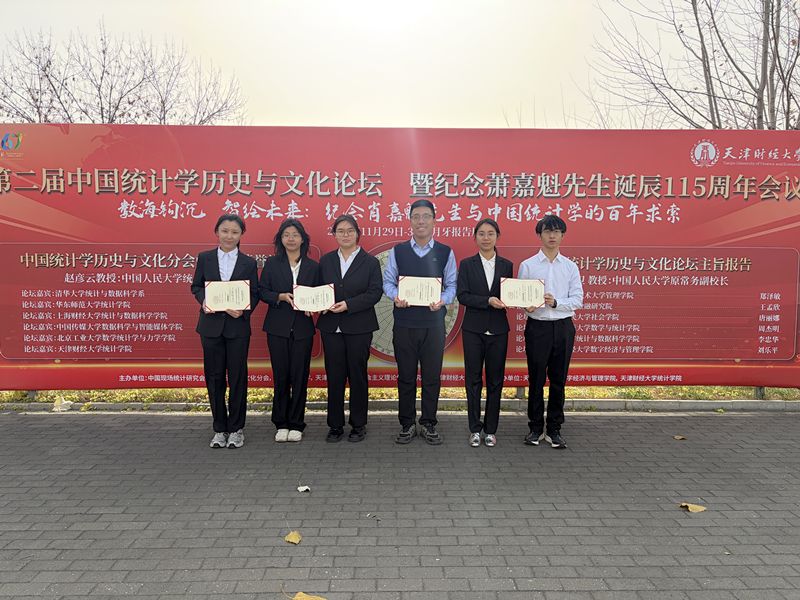 日前,beat365官网经济学院经济统计学专业师生赴天津财经大学参加第二届中国现场统计研究会统计学历史与文化分会论坛暨纪念萧嘉魁先生诞辰115周年会议,在会议举办的多模态数字纪念活动竞赛及2025年“数据之美,统计之妙”最美统计图设计创新大赛中获得一等奖2项,二等奖1项,三等奖1项,专业教师郝枫教授与张圆副教授获得最佳指导教师奖。