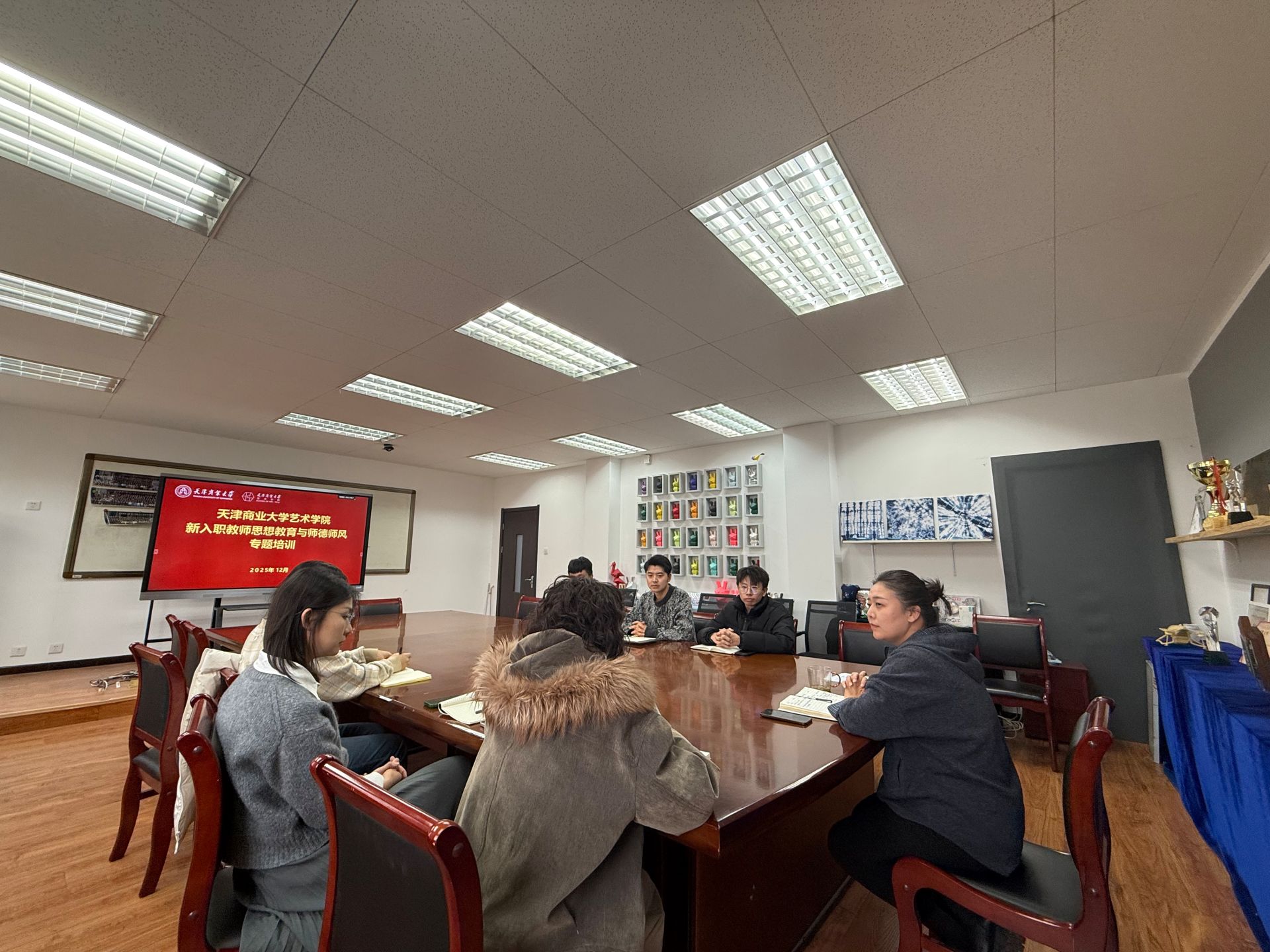 为深入贯彻落实立德树人根本任务,进一步加强青年教师队伍建设,引导新入职教师坚定理想信念、明晰职业规划,12 月 10 日下午,艺术学院举办新入职教师职业发展与师德师风专题培训。学院党委书记侯越主持,本年度新入职的 7 名教师全程参与。