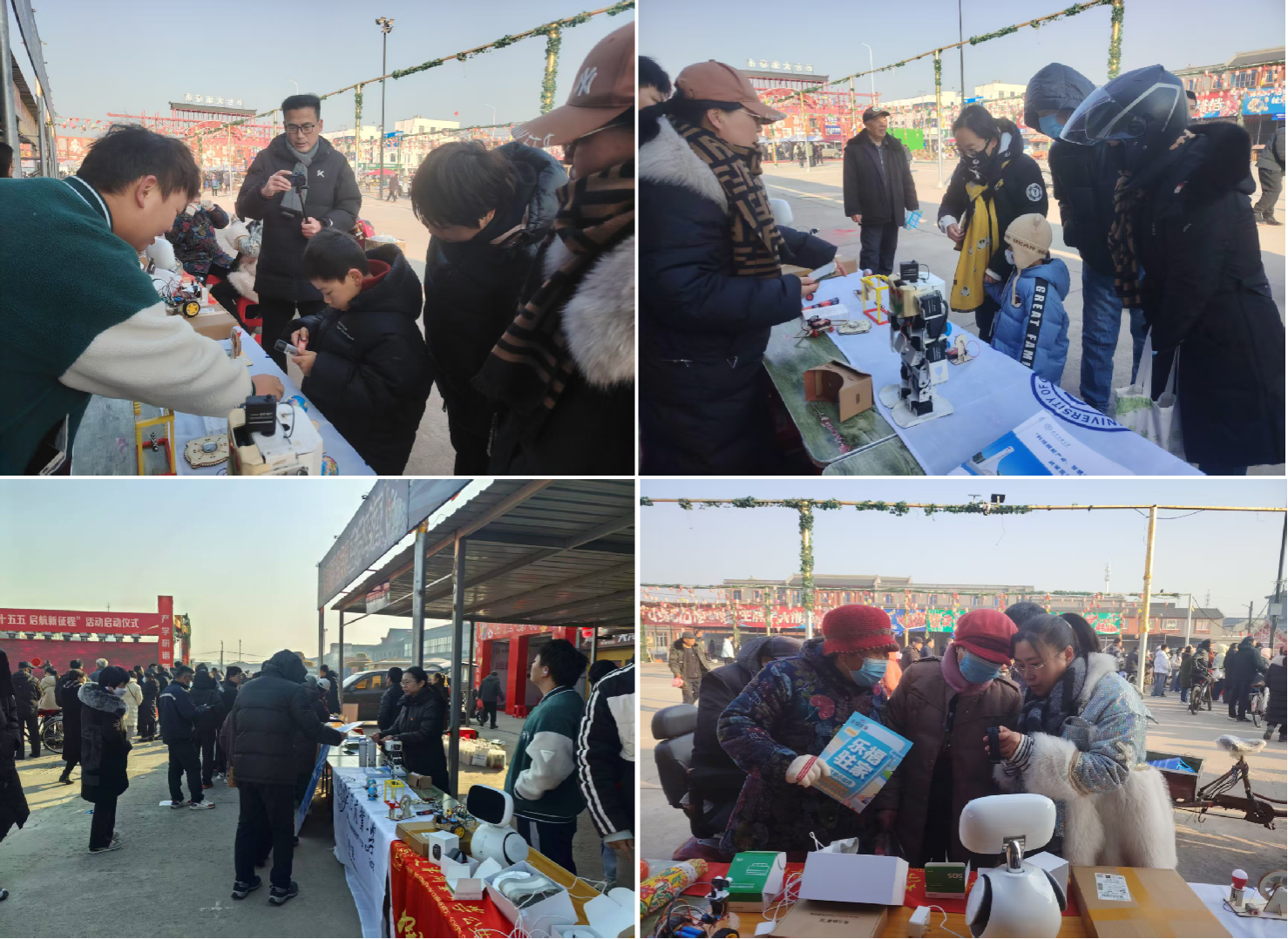 在“beat365英国官方网站科普体验区和智慧养老体验区”,理学院物理系教师党支部刘敏老师带领学生为小朋友们生动演示了牛顿摆、手摇发电机、舞蹈机器人、3D眼镜、避障机器人、昼夜演示仪等科普实验仪器,并开展趣味互动,激发孩子们对科学的兴趣;公共管理学院胡莹老师和赵志培老师则带领学生展示了高校在智慧养老领域的最新研究成果,与现场老年朋友亲切互动,体验居家SOS报警器、红外线感应仪、睡眠检测带、电脉冲理疗仪、家庭可视化智能陪伴机器人、GPS电话手表等智慧养老设备,传递科技带来的温暖和便利。理学院办公室党支部罗杨老师携带支部精心准备的政策宣传册,开展乡村振兴政策宣传,并与企业深入交流,了解当前用人需求。