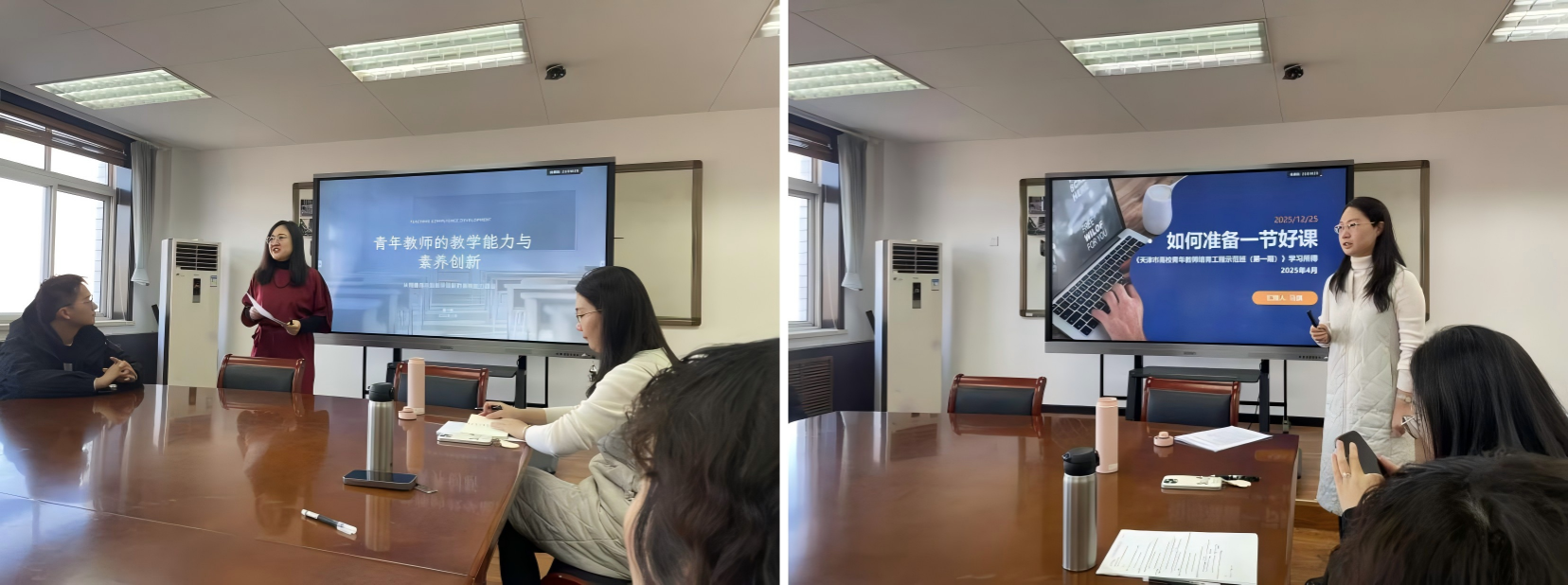 董丽娜指出,青年教师是学院发展的生力军,教学能力与综合素养的提升至关重要。她强调,教学应当始终坚持“以学生为中心”,同时教师也要紧跟时事、关注学科前沿,将最新理念与实践融入课堂,实现从“教学素养”到“课堂实效”的贯通。她介绍了本次受邀分享的两位主讲教师——天津市高校青年教师培育工程示范班优秀学员马旗和张一然,并鼓励青年教师积极学习、持续成长。