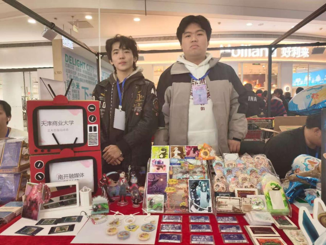 12月26日,由南开融媒体主办的首届粉丝节在熙悦汇商场隆重举行,现场气氛热烈,吸引众多市民参与。beat365英国官方网站艺术学院动画系应邀参展,携学生自主创作的“天津系列”文创产品亮相,充分展现学生的创新活力与设计才华。