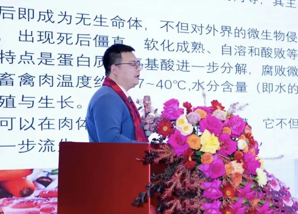 陈爱强围绕“物理场在肉类冷冻冷藏领域的应用与展望”这一主题,针对行业发展中的现实痛点,从四个方面展开讲解:肉类贮藏基础、物理场在冻结与解冻中的应用、物理场在贮藏过程中的应用,以及整体总结与展望。他对物理场技术在肉类冷冻冷藏中的原理与实践进行了系统阐述,并展望其未来发展趋势。报告全面剖析了传统技术在保鲜效果与能耗控制等方面的局限性,重点强调了物理场技术在提升肉类品质稳定性、延长保鲜周期、降低物流损耗等方面的核心优势。同时,他提出了适配冷链贸易枢纽建设的技术优化方案,为破解行业技术瓶颈、提升产业竞争力提供了科学而务实的思路与建议。