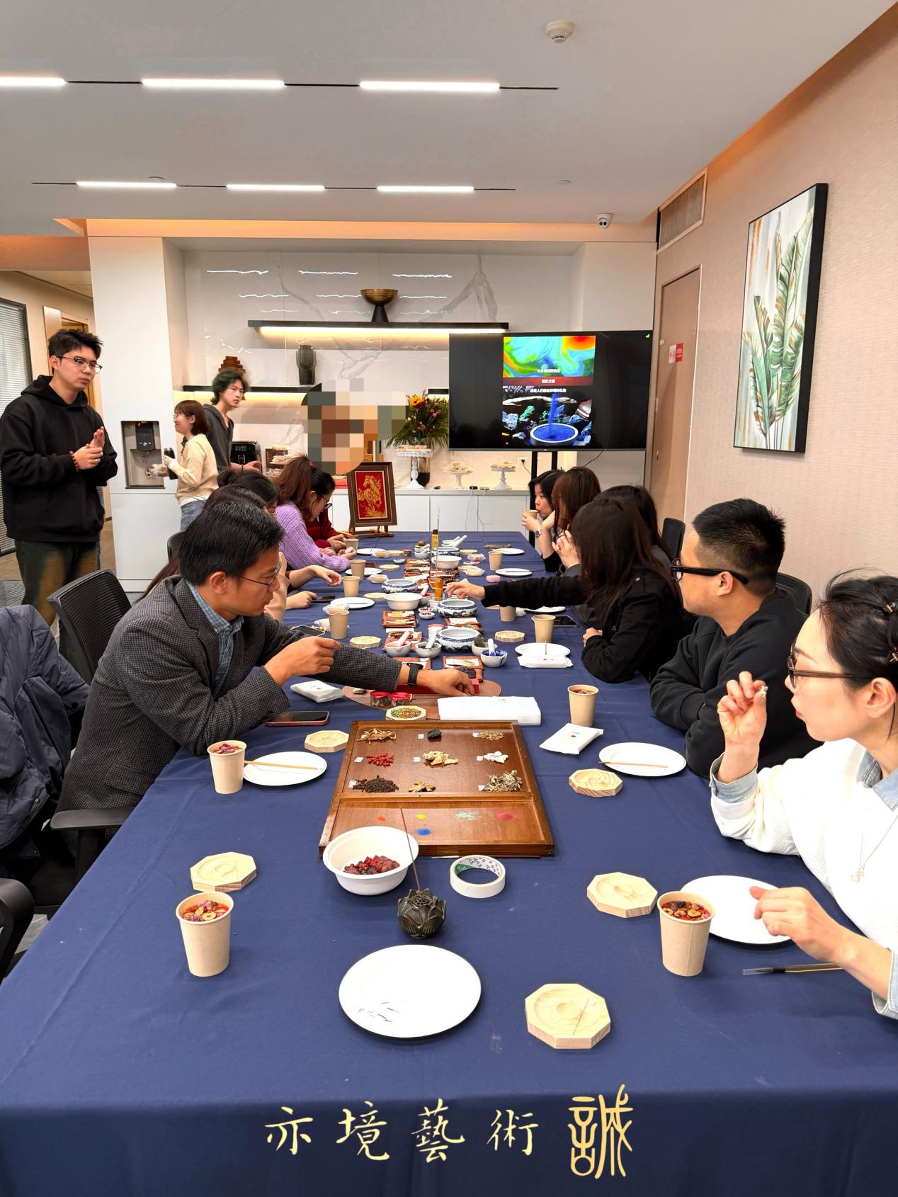 作为艺术学院自主创业的优秀代表,亦境艺术工作室由大一大二学生及应届毕业生组建,深耕矿物岩彩绘制、古法药香等非遗领域的创作与推广。此次沙龙活动由团队全程策划执行。其中,古法药香珠项目由学院王超老师与创业中心李慧老师联合指导,携手新疆和田学院民族中医专业、亳州康美新药、保信堂等权威机构共同研发,实现了传统非遗技艺与现代科研力量的深度联动,让非遗传承更具科学性与专业性。