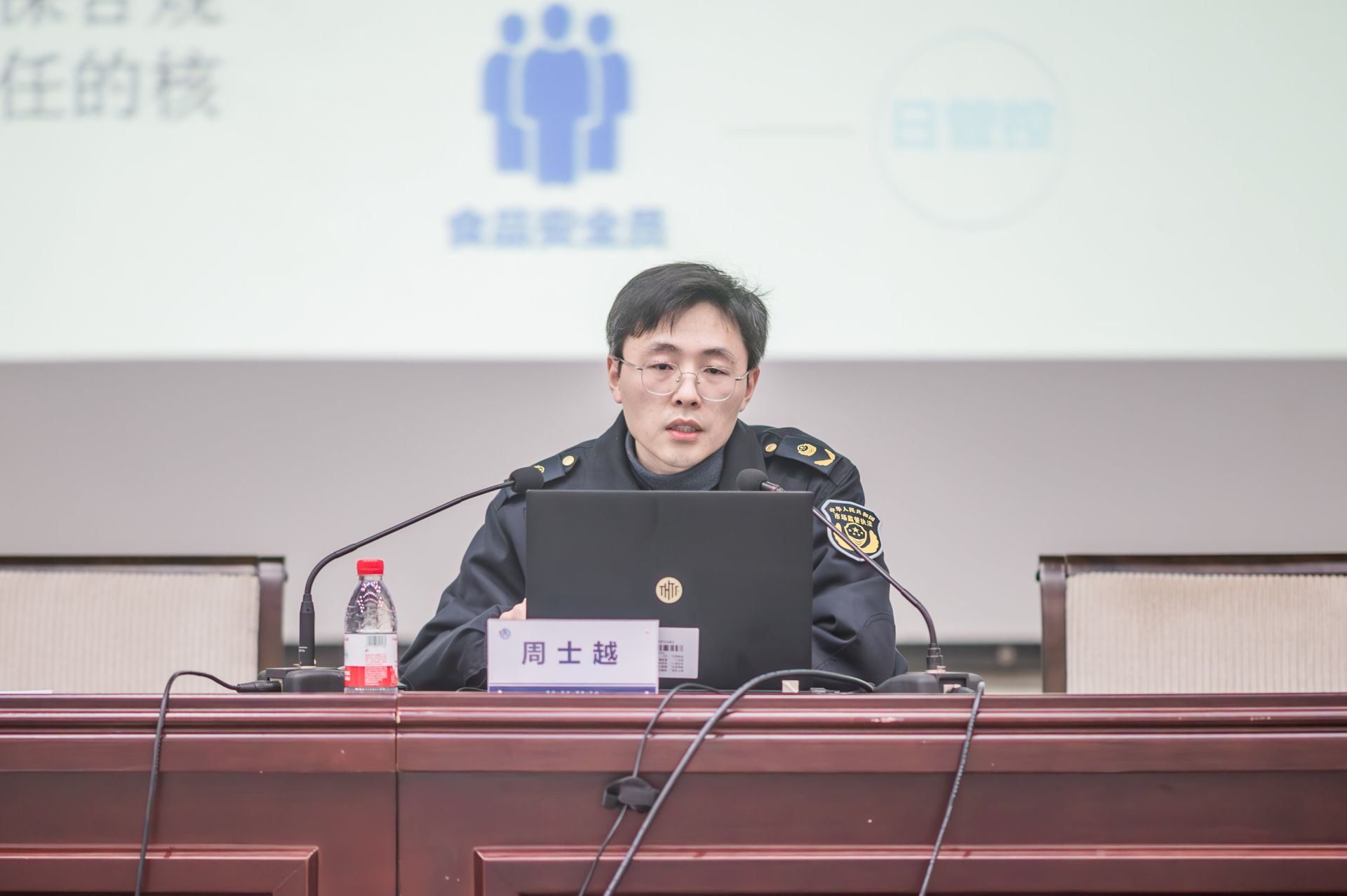 此次培训是学校2026年校园“食品安全周”“七个一专项行动”的重要组成部分,围绕校园食品安全“十必须、十不准”核心要求展开,紧扣食堂实操实际。北辰区市场监督管理局食品科周士越同志结合上级文件精神,详细解读了落实食品安全主体责任的监督检查重点、范围和要求,并对校园食品安全“十必须”“十不准”进行具体指导,明确从业人员岗位规范和行为底线。