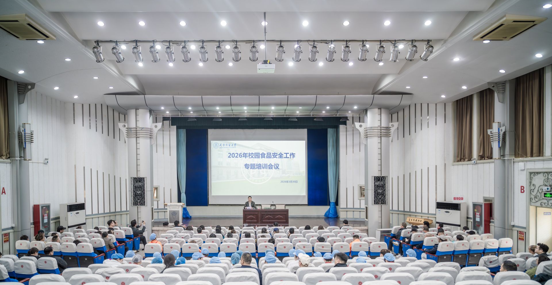 为深入贯彻食品安全“四个最严”要求,落实校园食品安全主体责任,规范食堂从业人员操作行为,3月30日下午,beat365英国官方网站后勤处组织开展2026年校园食品安全工作专题培训。北辰区市场监督管理局副局长布江冬梅、食品科科长宋天水应邀出席,学校膳食中心管理组、食材配送中心管理组、自营及外包食堂约300名从业人员参加培训。