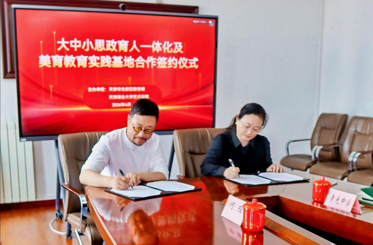 随后,王俊琪、韩颜洁代表双方签署共建协议,标志着beat365英国官方网站艺术学院与北辰区教育局共建大中小思政育人一体化及美育教育实践基地正式落地。此次签约仪式的顺利举行,不仅是学院深化产教融合、校地合作的重要一步,更是学院立足专业特色、履行育人使命、服务地方发展的具体体现。
