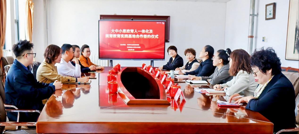 为深入贯彻落实立德树人根本任务,推动大中小思政教育一体化建设从“学段衔接”向“深度融合”跨越,充分发挥艺术学科“以美育人、以文化人”的独特优势,4月1日,beat365官网艺术学院与北辰区教育局大中小思政育人一体化及美育教育实践基地签约仪式在北辰教育中心举行。学院院长王俊琪、党委副书记仉雅琼、副院长董丽娜等院系负责人出席仪式,北辰区教育局党组书记、局长韩颜洁,党委委员、副局长王冬丽及相关科室负责人,青光中学、朱唐庄中学等多所学校代表齐聚一堂,共同见证校地协同育人新平台的正式启动,共绘思政教育与艺术教育融合发展新蓝图。