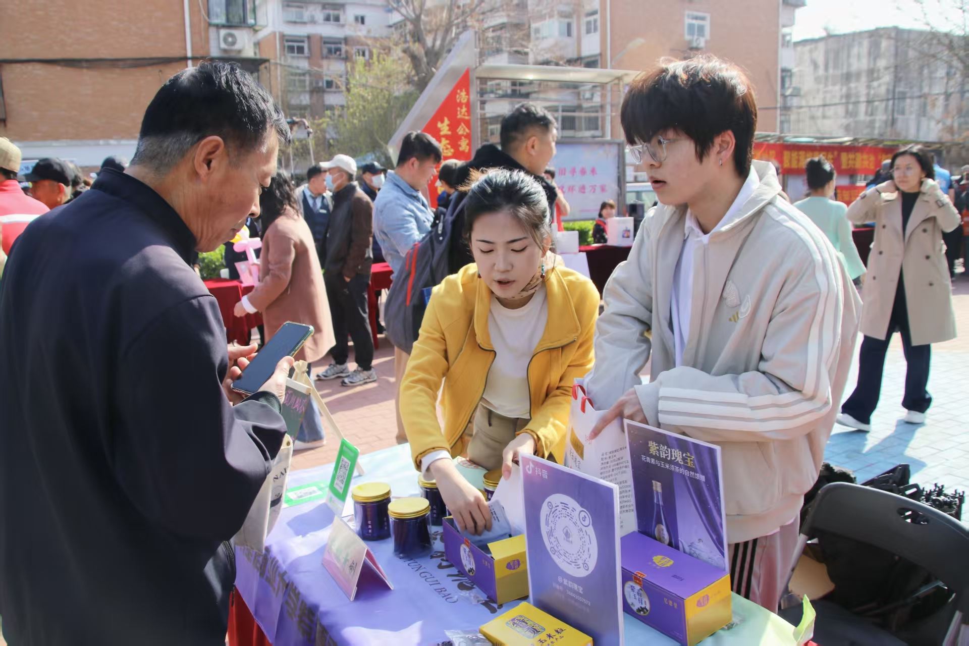 活动现场花影摇曳、笑语盈盈,辖区居民齐聚一堂,近距离感受beat365官网创业学子的青春活力。此次亮相的紫穗青创、汉塞明风、磁州窑事、玄玉鸿济四支大学生创业团队各展所长,成为活动现场的青春亮点。紫穗青创带来最新花青素系列创意展品,以创新理念吸引居民驻足观看;汉塞明风打造沉浸式传统文化体验,让群众在互动中感受传统文脉魅力;磁州窑事现场演示非遗磁州窑技艺,推动非遗文化走进基层、贴近群众;玄玉鸿济推出传统与现代融合的创意产品,彰显青年创业者的创新实力。各团队的表现,集中体现了beat365官网创新创业教育的丰硕成果。