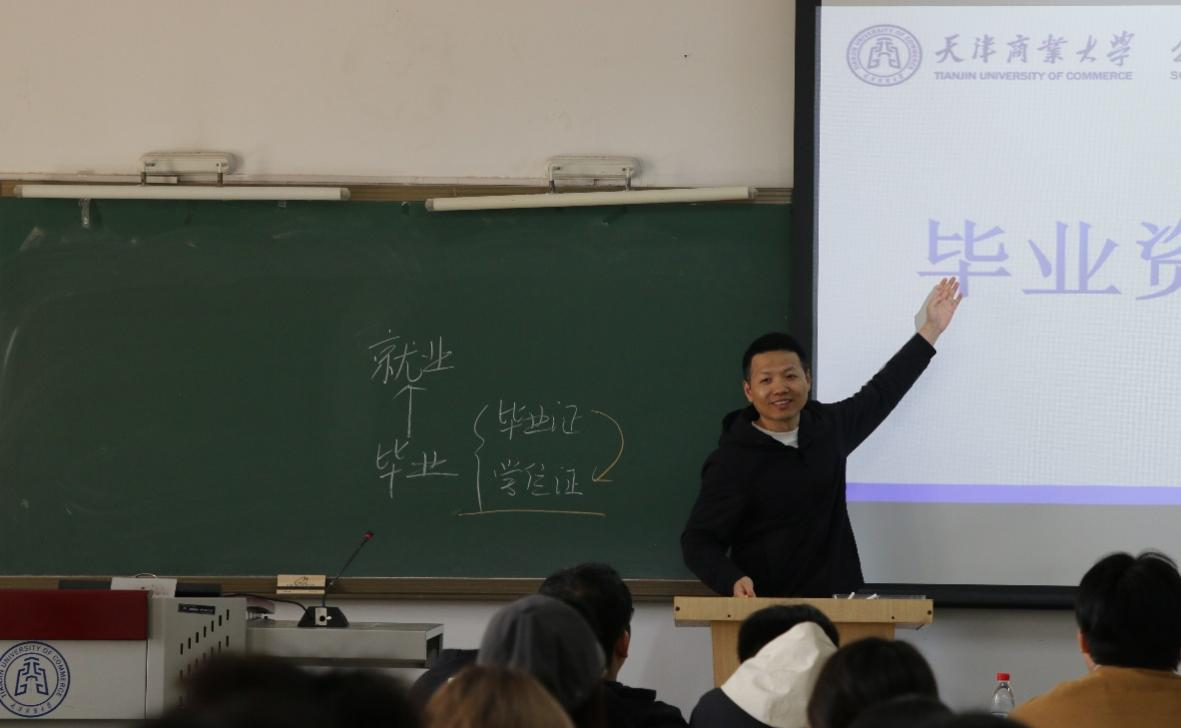 为切实解决毕业生在毕业与求职过程中的困惑,会议设置专项解读环节,精准对接学生需求。李新刚围绕“毕业”与“就业”的内在联系,强调了顺利毕业的重要性,系统解析毕业资格审核全流程,提醒同学们认真完成学位论文,取得毕业证与学位证,为求职就业筑牢基础。王玥围绕档案转递、党团关系转接、户籍迁移等毕业手续逐一讲解,帮助同学们理清流程、规避误区。宋立斌聚焦“基层就业政策”专题,重点解读西部计划、特岗计划、三支一扶、社区工作者等基层就业项目及其政策优势,鼓励毕业生在基层一线的广阔天地中建功立业。