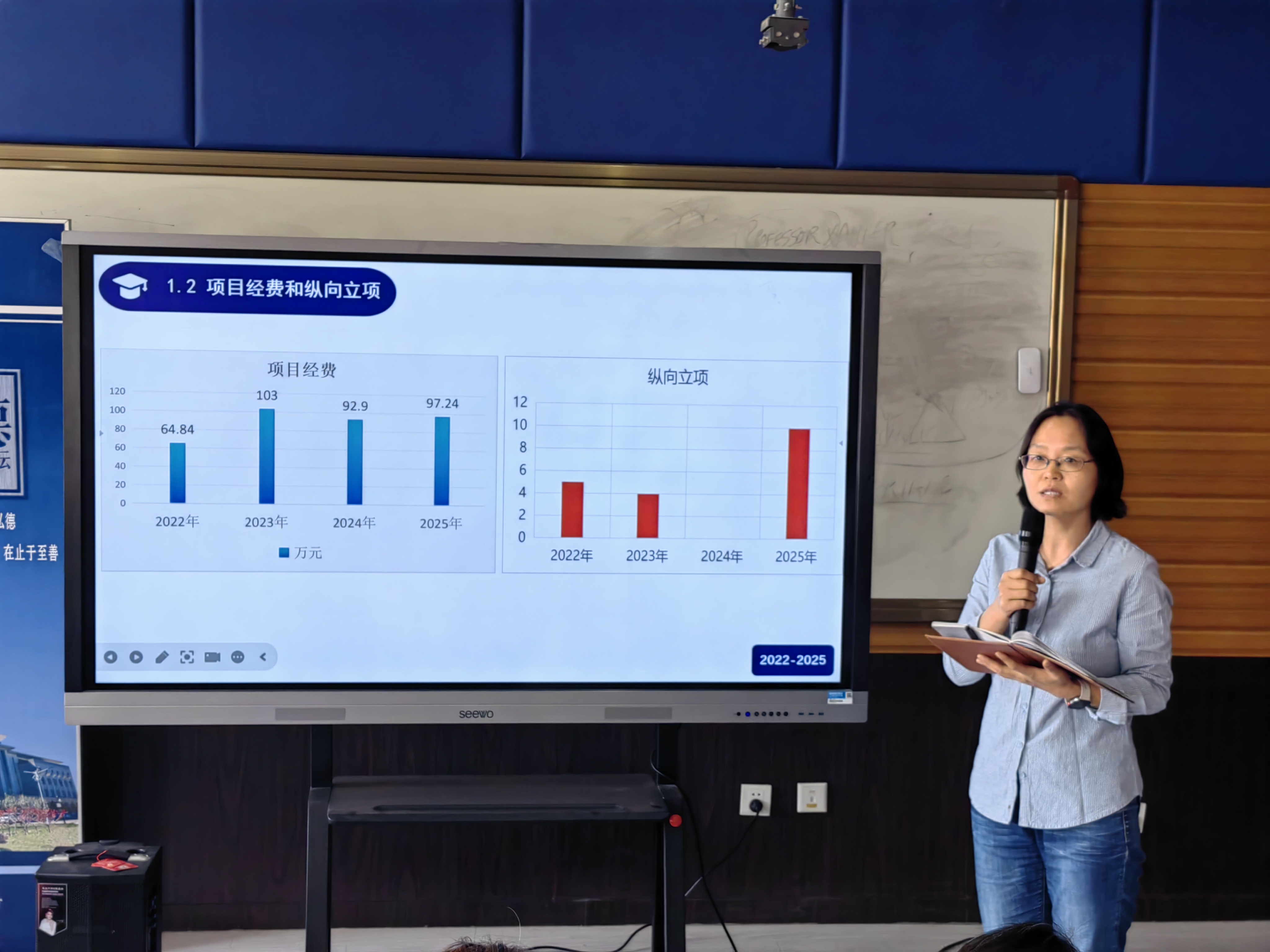 副院长刘恒丽通报了学院2022-2025年科研工作整体情况,从纵向项目立项、科研成果产出、科研团队建设、社会服务贡献四个维度做了工作总结,同时客观分析了当前学院科研工作存在的国家级项目短缺、高水平成果少、跨学科研究融合不够、青年教师科研动力有待激发等突出问题。她明确了本年度科研工作的核心目标,并针对项目申报培育、科研团队建设、科研成果激励等方面提出了具体改革举措,要求全院上下要统一思想认识,强化个人责任担当;同时完善服务保障体系,为教师申报项目、成果评奖提供全流程指导;营造良好科研生态,充分激发广大教师的科研创新活力。