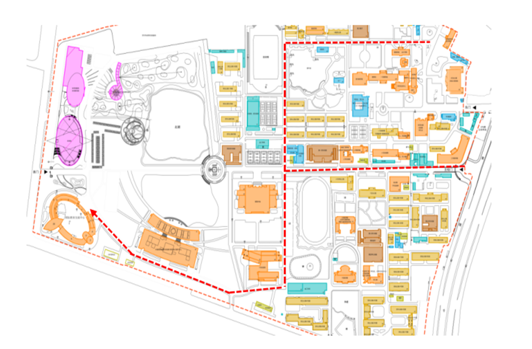校内车辆通往西区导行示意如下图所示: