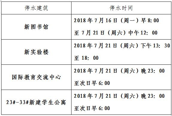 请广大师生予以支持,提前做好准备,安排好洗漱时间,因此给大家带来的不便,敬请谅解。