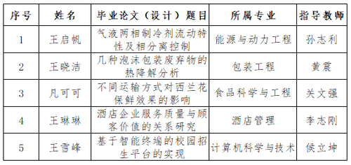 根据《市教委关于严把质量关口进一步做好普通高等学校本科毕业设计(论文)有关工作的通知》(津教高函〔2019〕35号)的要求,经学院推荐、学校审查及校外专家评审,拟推荐机械工程学院、生物技术与食品科学学院、管理学院及信息工程学院报送的5篇校级优秀毕业设计(论文)参加“第十届市级优秀本科毕业设计(论文)评选”,现将拟推荐的毕业设计(论文)名单及全文(见附件)公示如下: